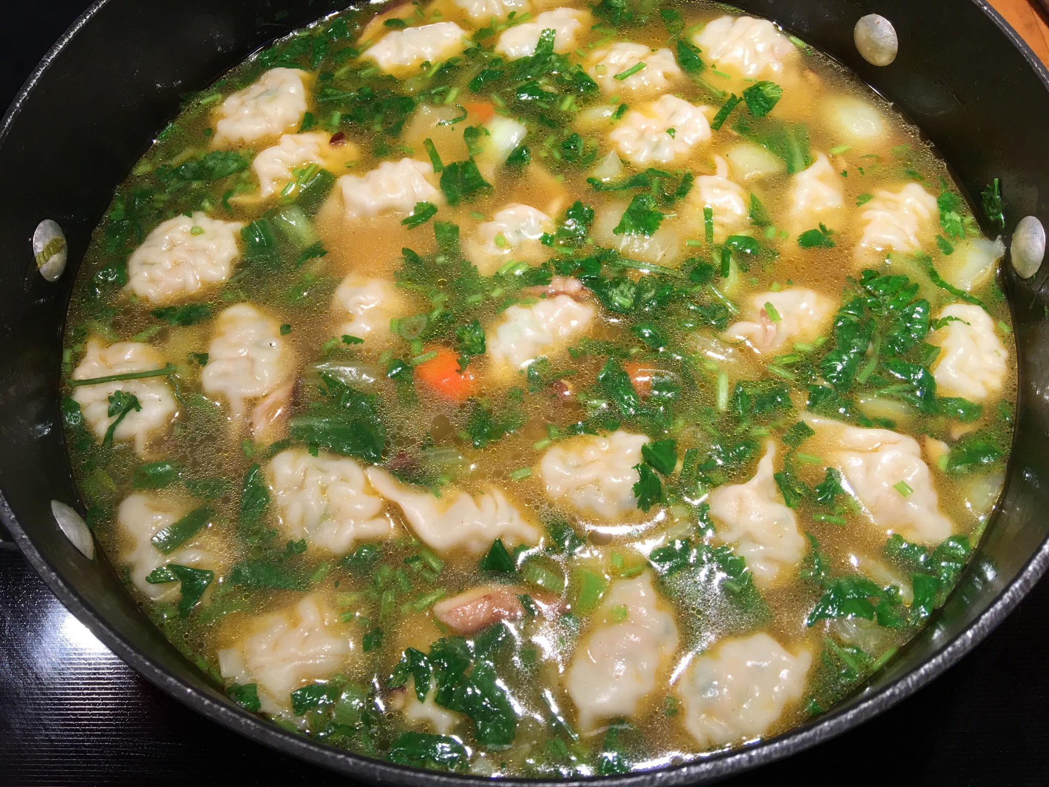 - 1 pkg Trader Joe’s Chicken Wontons (frozen)