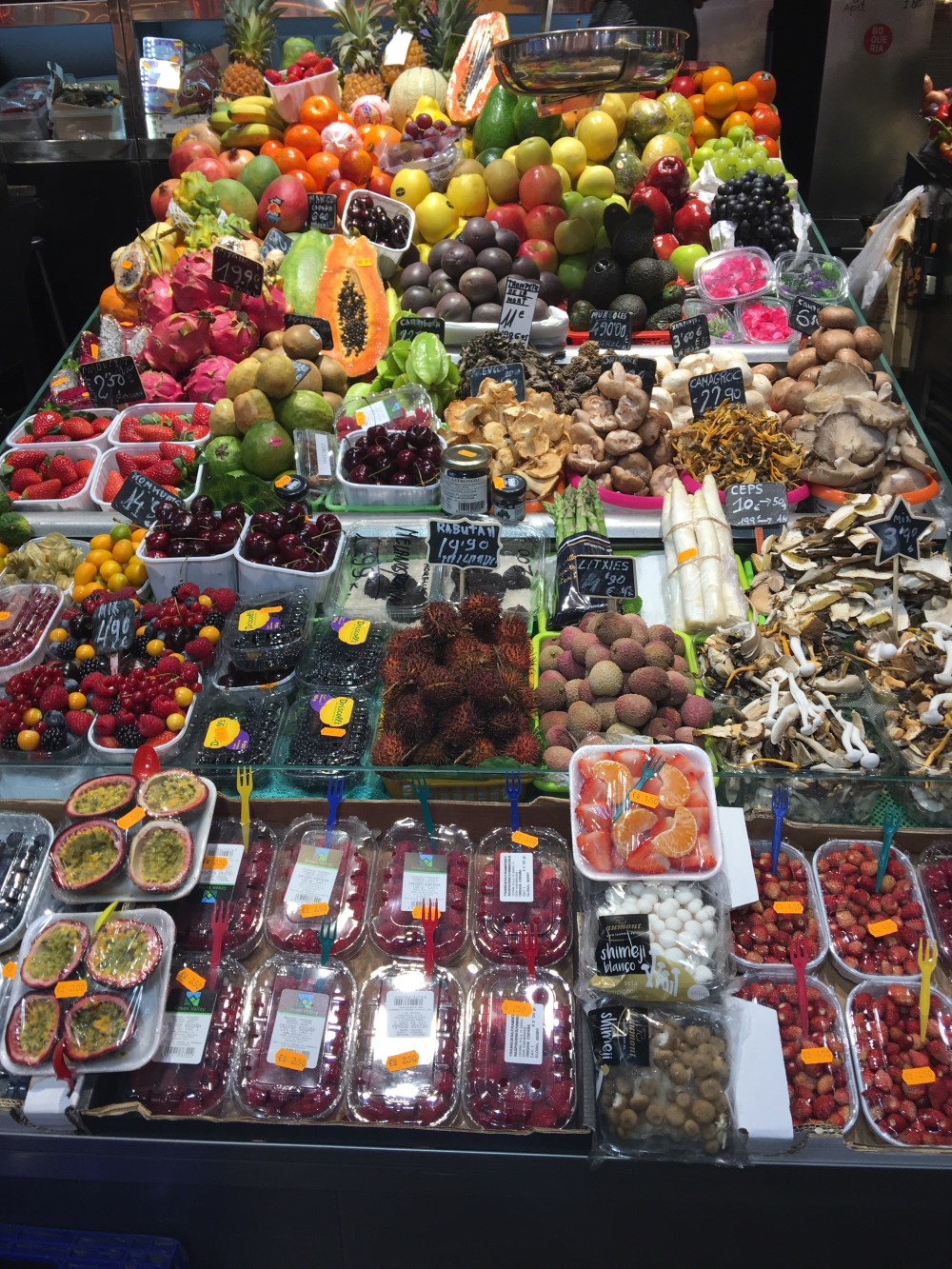 The taste of Barcelona is many layers of flavor. A colorful fruit stand within La Boqueria Mercato caught me by surprise (http://www.boqueria.info/mobile/en/index.html)I marveled at the wealth of food items and seafood.
